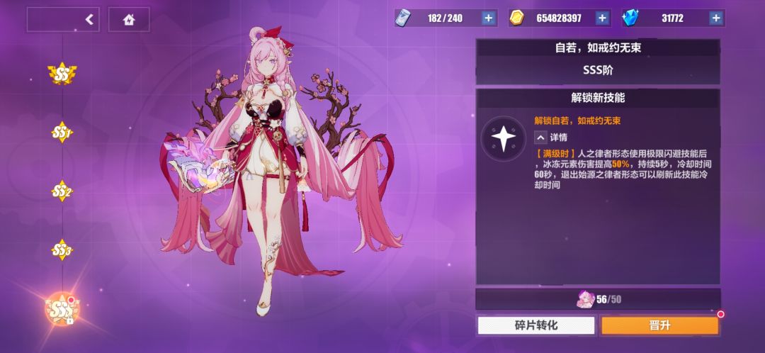 没想到这个粉色肥婆居然能被我白嫖到sss,也算不上是白嫖但是花点小代价就能拿下也算是非常不错的了,虽然现在爱莉已经满大街了毫无竞争力但是拥有了sss的爱莉就是无敌的!