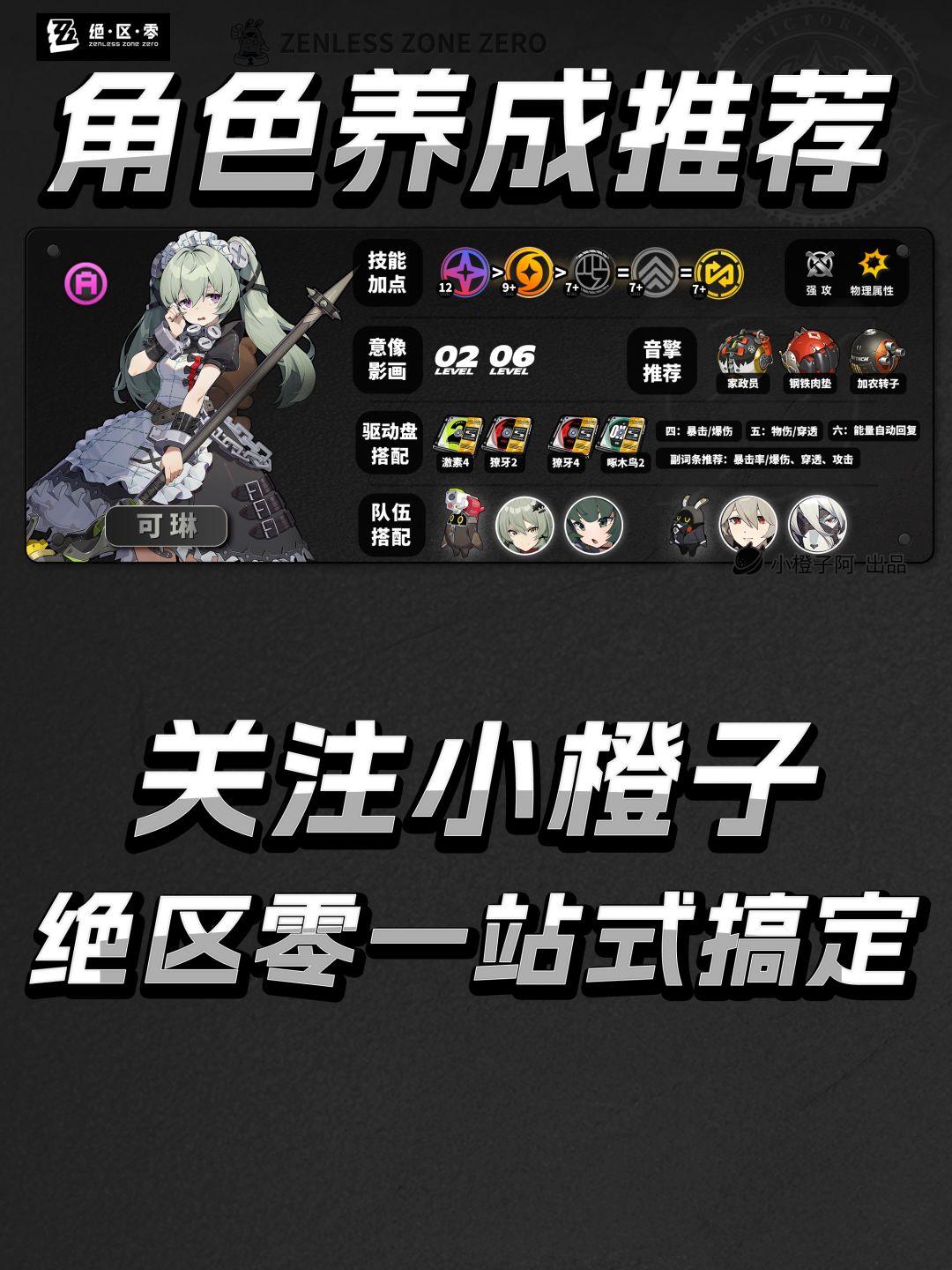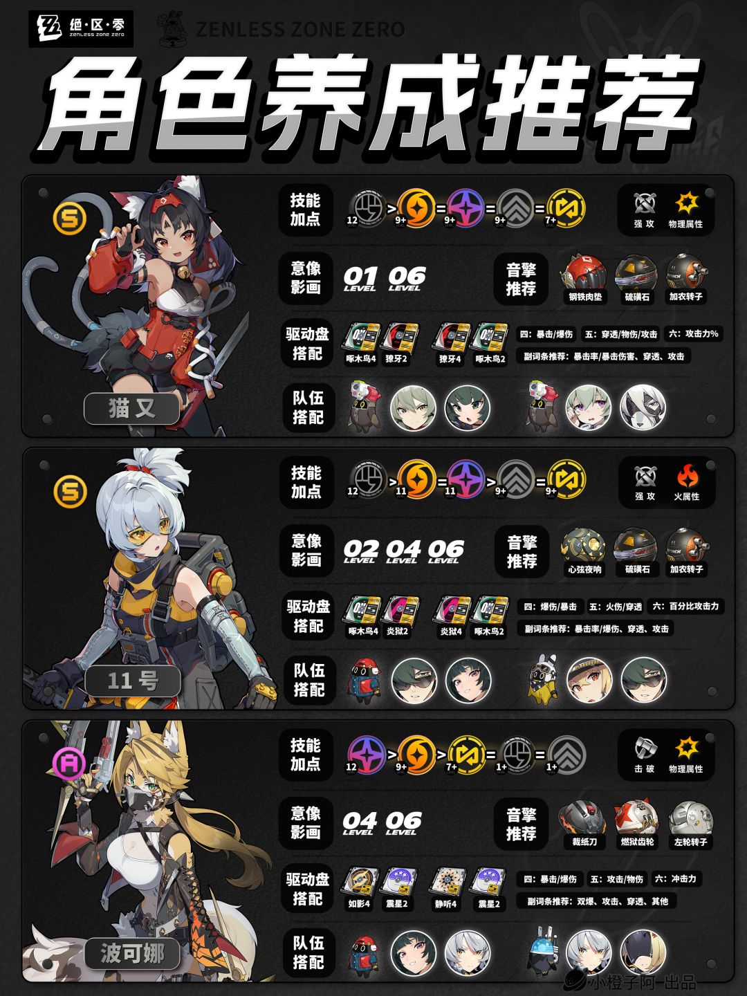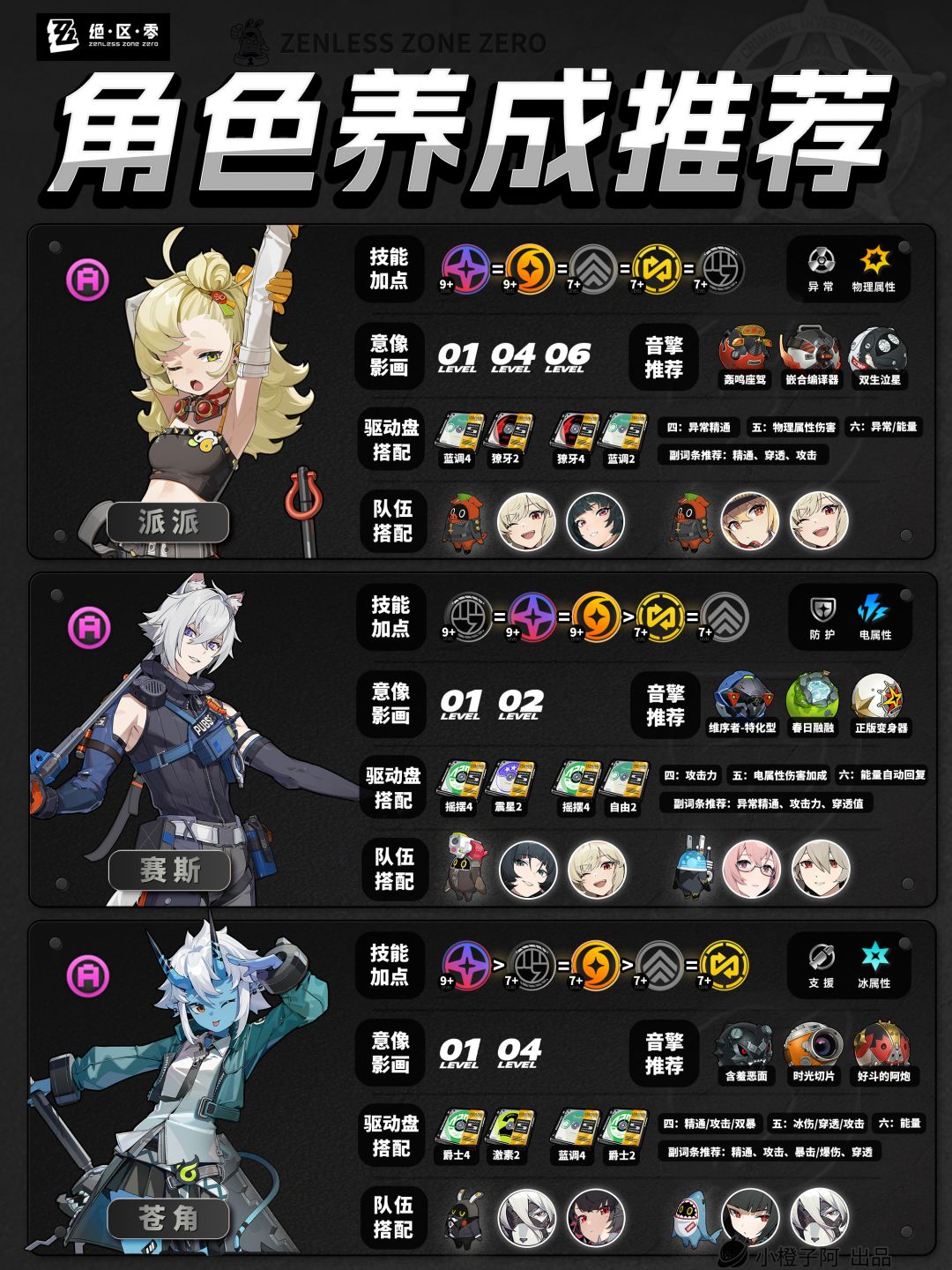 再就是一点,由于图片大小的限制,橙子每次是把角色配队更新到最新角色的组队情况,但并不代表角色只能有这两个配队,比如支援角色【丽娜】,丽娜可以加入绝区零大多数的队伍,而不仅限于下方展现的两种配队情况。