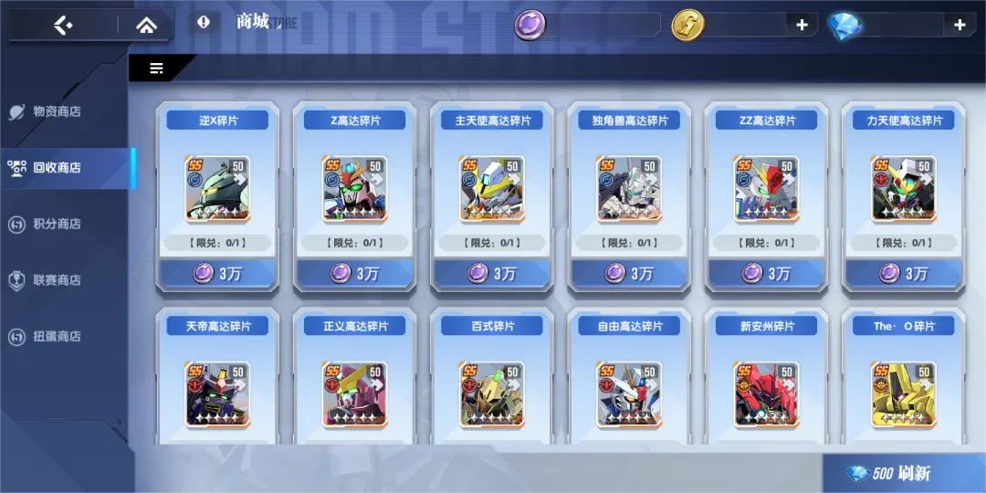 8. 回收商店商品价格调整,增加强袭杰刚碎片、厄运式IV(TRANS-AM)碎片的兑换