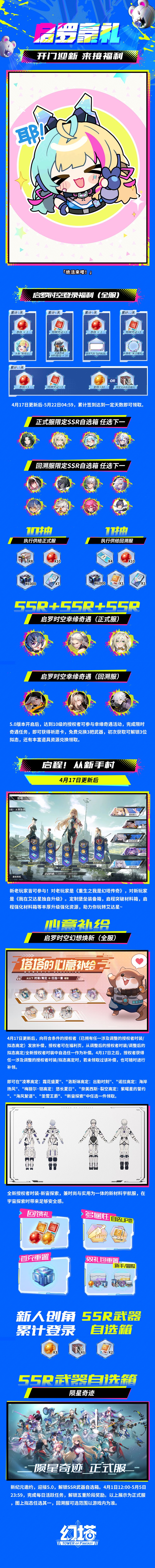 ε005启罗5.0重磅福利上线,轻松拿下免费ssr*5,更有执行供给签到福利、热门返场、启程福利等等,统统为你奉上