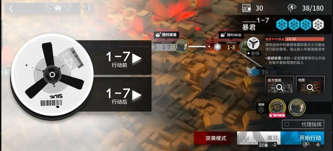 章节和活动的完成进度为图标左上角的蓝色标志,0敌人进入蓝门获胜获得3星,突袭/磨难级别关卡为1白星