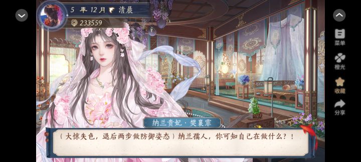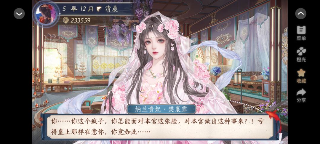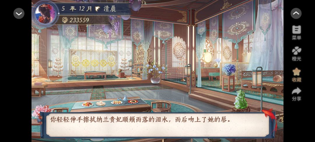 这个作品最丰富的是后宫线,我在这条线里属于混沌恶人,喜欢的妃子疯狂捧捧捧,不喜欢的妃子直接害死,主打一个“我是后宫小皇帝”。因为自由度特别高,所以有很多功能我还不会用,印象最深的是里面有写明,对于其他妃子来说,你也只是个 npc。所以你可以体会到,互动的时候,妃子会在她界面中“选择”向你学习技艺之类的.