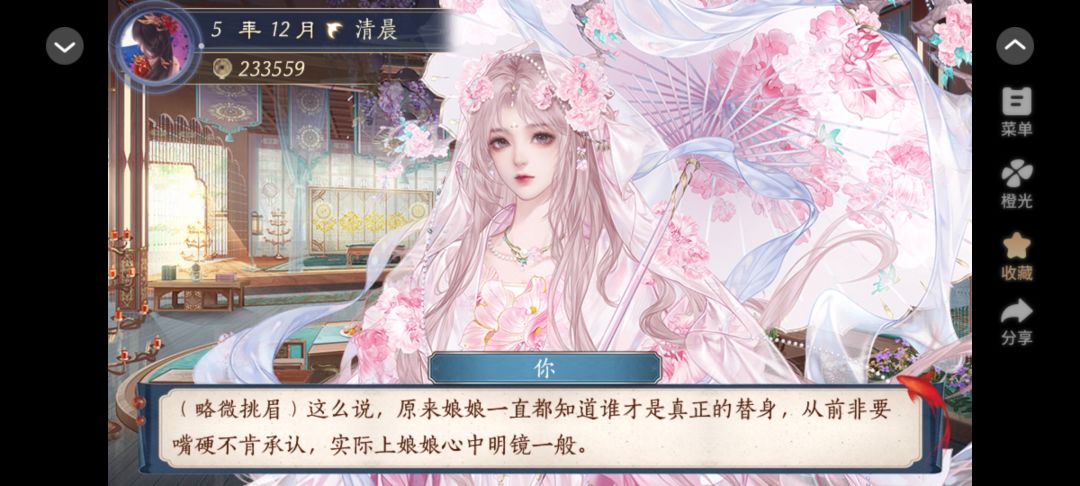 如果想玩爽的话,不要太纠结这些有的没的,想活出什么样的人生都取决于你的决定。也不一定要bt玩法,可以和皇帝携手天下遣散后宫,也可以和平民丈夫一生一世一双人,这些都是你的人生,自然由你来做出决定。(配图是王妃线强迫自己替身的剧情,个人觉得香香的)