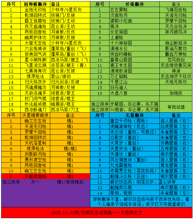 251103更新《白嫖驾崩枪珍珠书/祖师殿刀令/天星/无量顺序推荐》