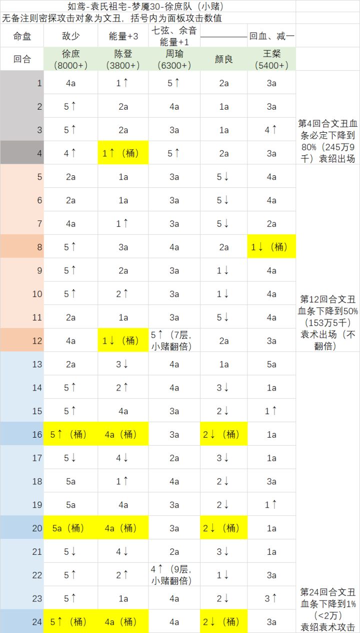 袁氏祖宅 梦魇30 徐庶队跟打表格