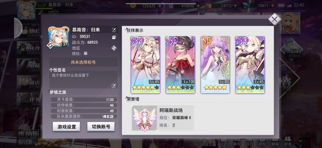 三、第一天解释的梦境竞技场就是平平无奇的常规PVP,摸好机制没什么难度,产出也没有什么特殊的地方,唯一特殊的地方是前五十名结算奖励没有钻石而换成了日常币(后期需求较大,用于主角天启与角色觉醒),前几名给专属角色碎片,但这下棋的是个仓管……