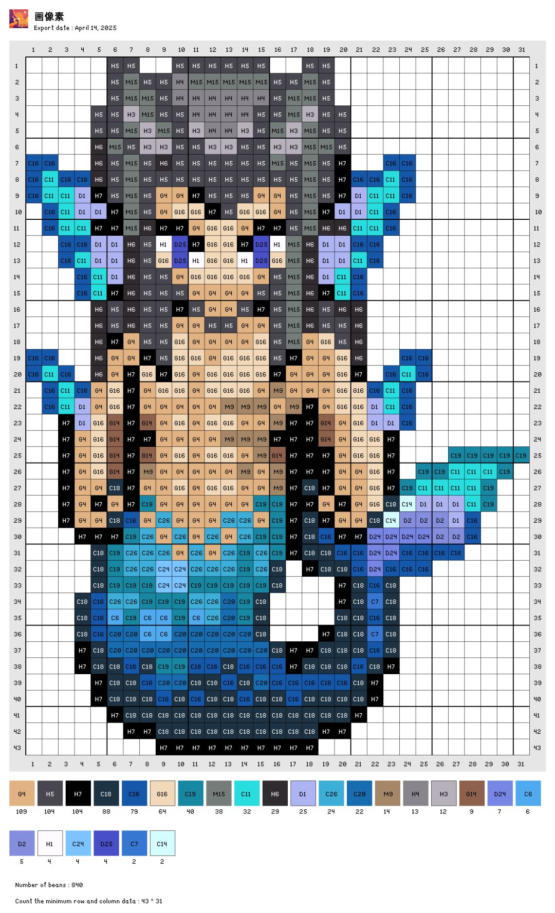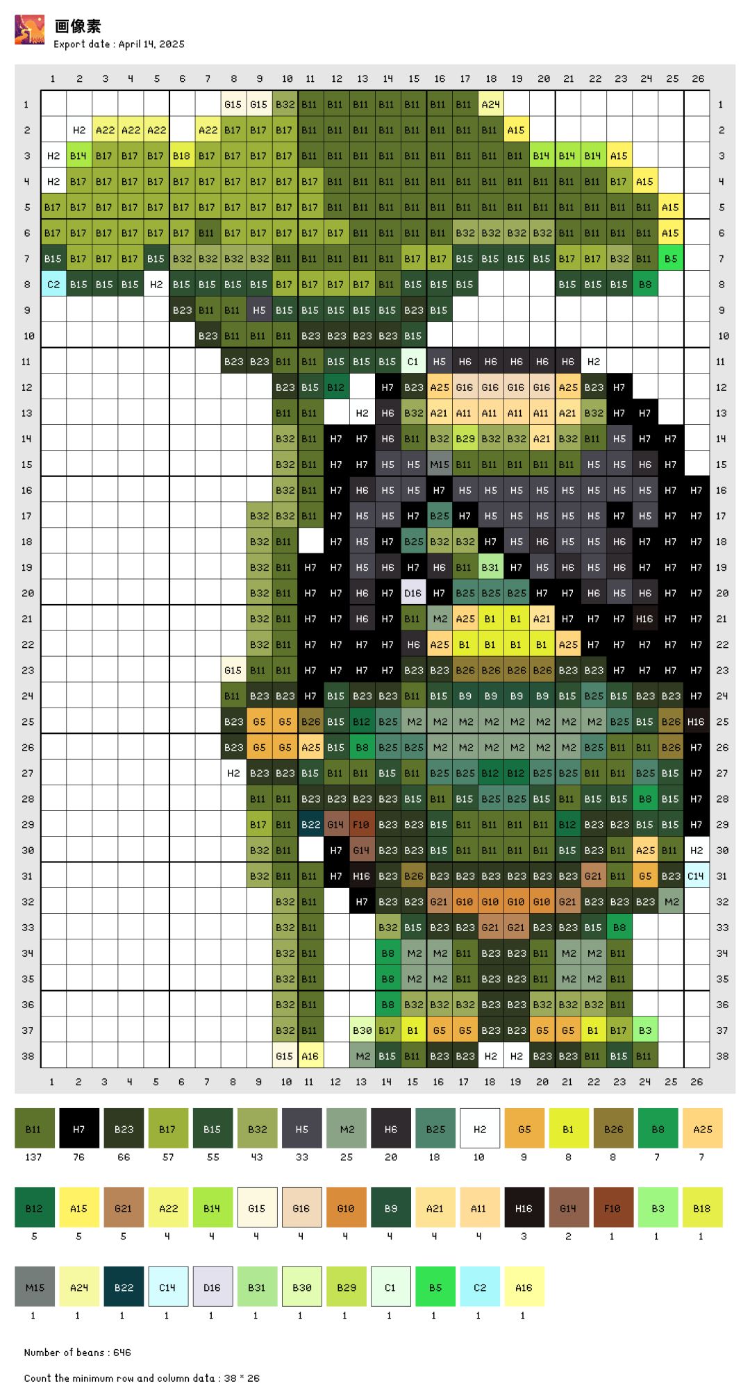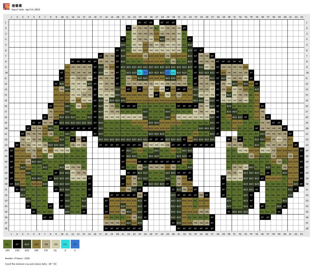 自己转的图,色号是拼豆的色号,有点误差。自己可以灵活更改。图是存的交流群里大佬发的素材包里的,感谢