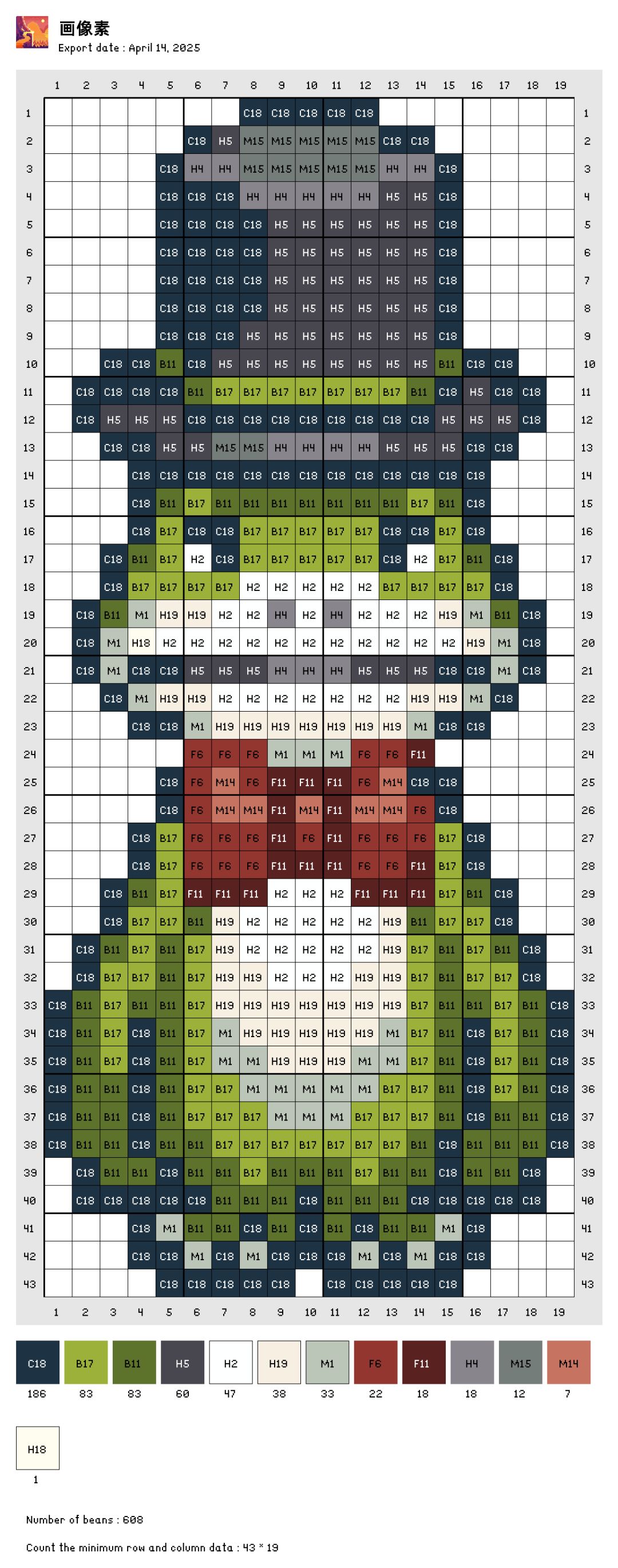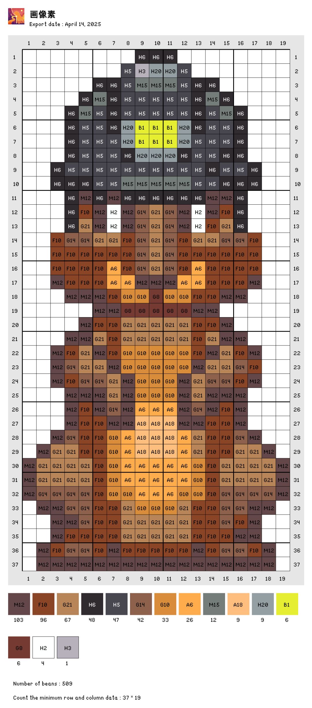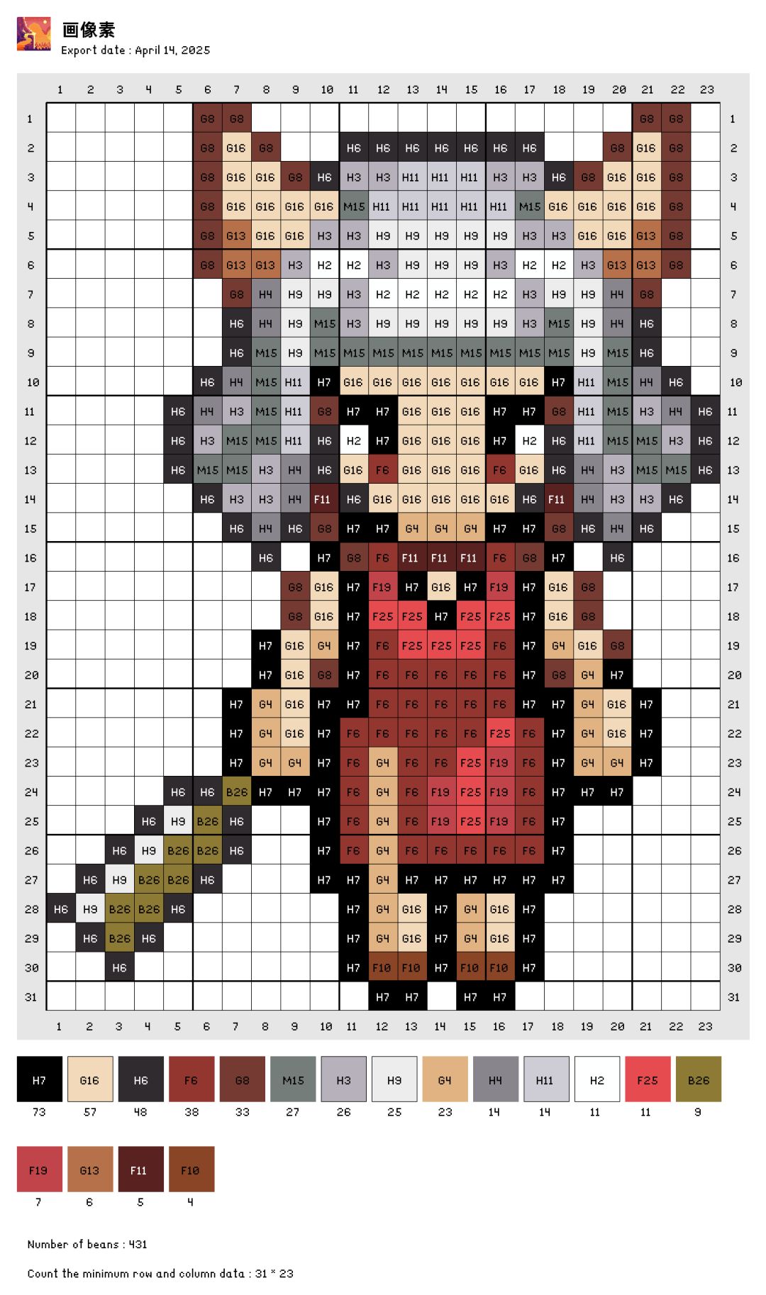自己转的图,色号是拼豆的色号,有点误差。自己可以灵活更改。图是存的交流群里大佬发的素材包里的,感谢