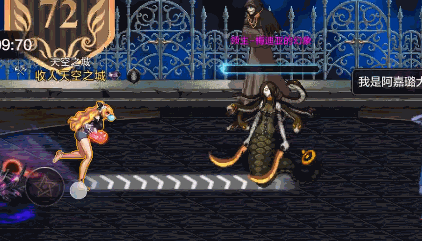 先讲美杜莎,美杜莎的攻击方式主要有三个,一个是旋转攻击,这个技能没啥好说的,离得远远地就好了,另一个攻击方式是投掷回旋镖,这没啥好破解的,就是正常的攻击方式,注意走位躲避即可,主要是她的石化之眼技能