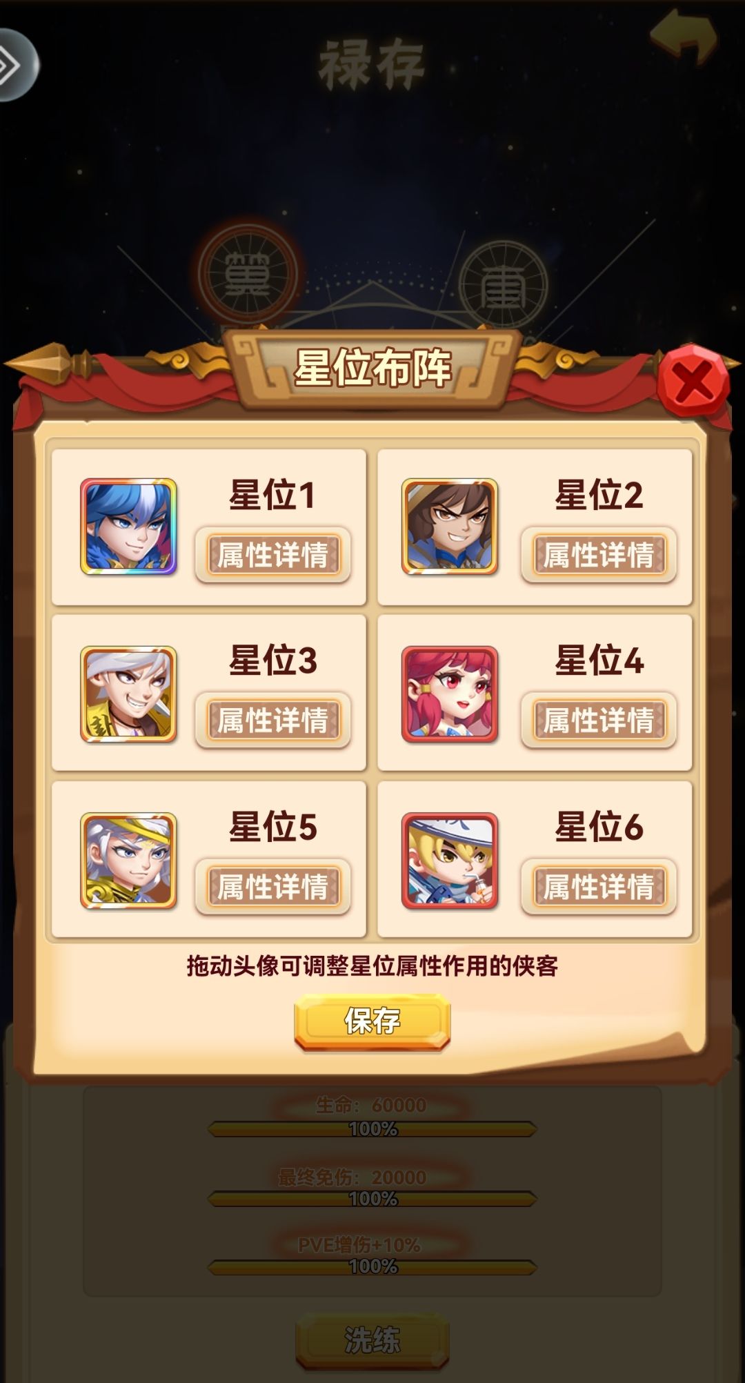 星位布阵调整位置很重要,多试几次,调整到最佳位置顺序可以提升不少战力。