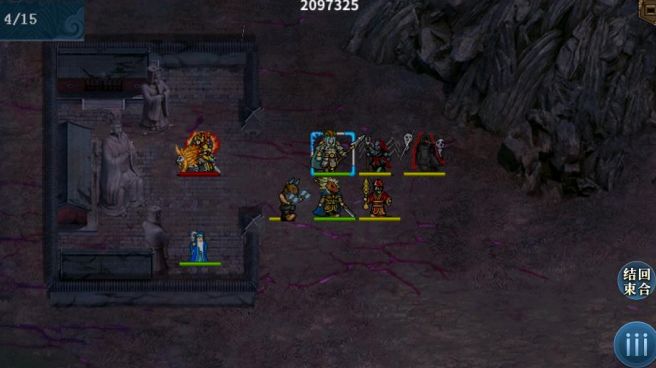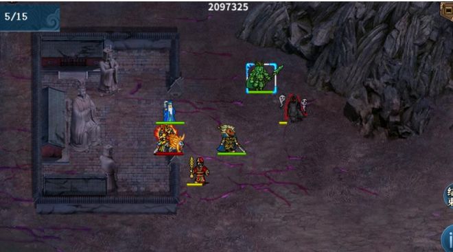 本关秦琼穿黄马贴着最上方走山地过,李家三人快速向右移动,优先清理山贼,可以实现秦琼不吃经验。