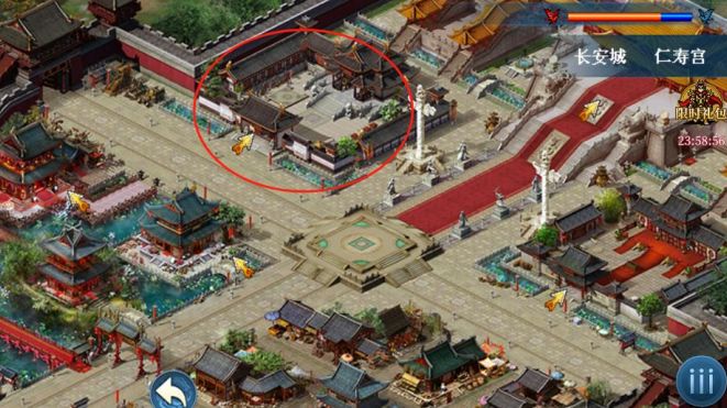 先进入下图红圈内区域“太子居室”,然后从皇宫(右上角)开始,依次触发剧情,注意每