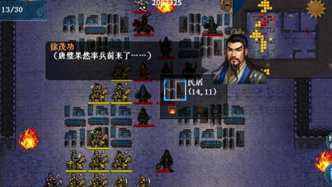 第 13 回合结束,唐璧带兵出现在南门下方,需要尽快击退。