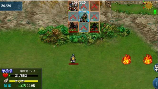 第 20 回合,击退单雄信就可以过关,想多嫖点功勋可以全灭。