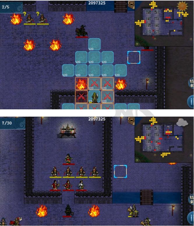 单雄信击杀 2 个步兵后,救出程咬金和尤俊达,回合上限+25,注意利用反击击杀可以节省