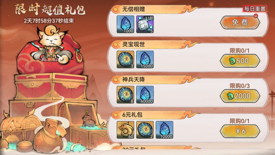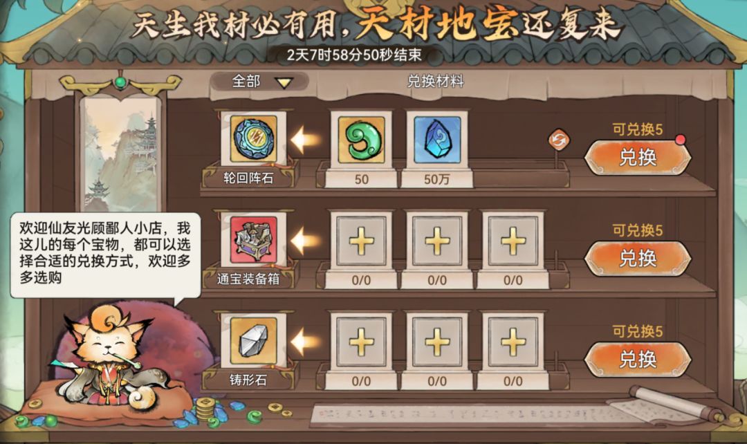 每次给盘阵注灵都需要消耗1个【轮回阵石】,祖师可通过购买限时礼包,或是在通宝仙市中兑换获取。