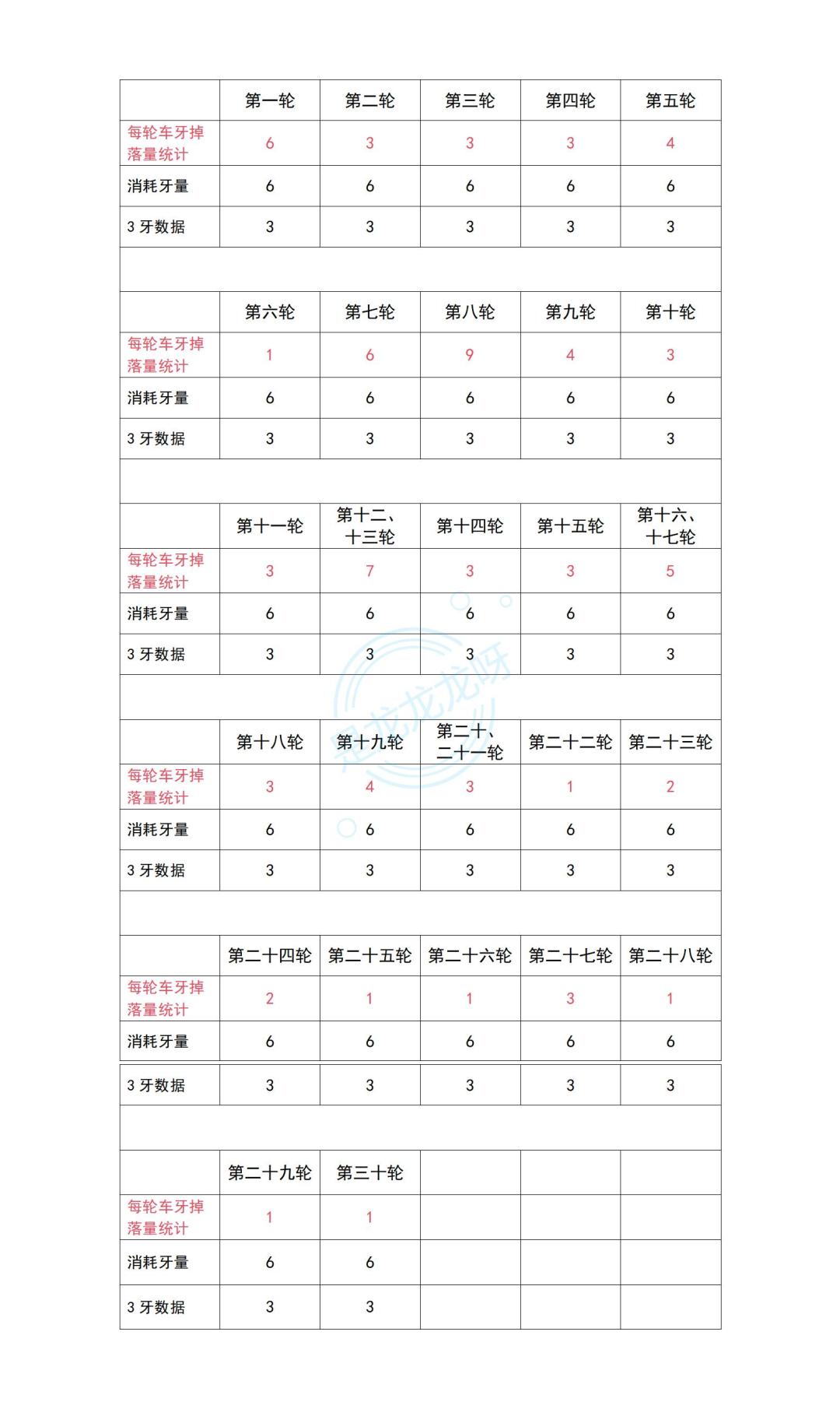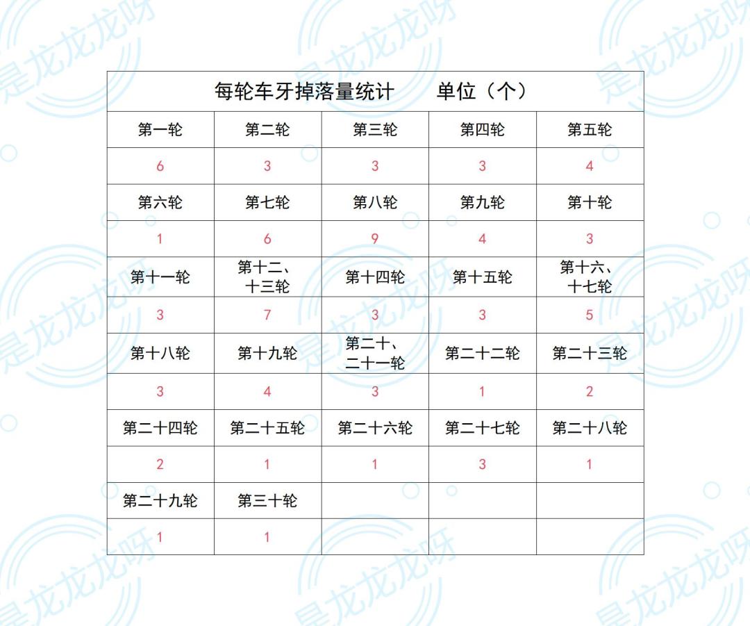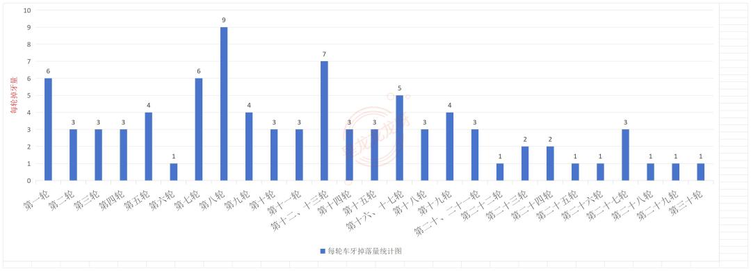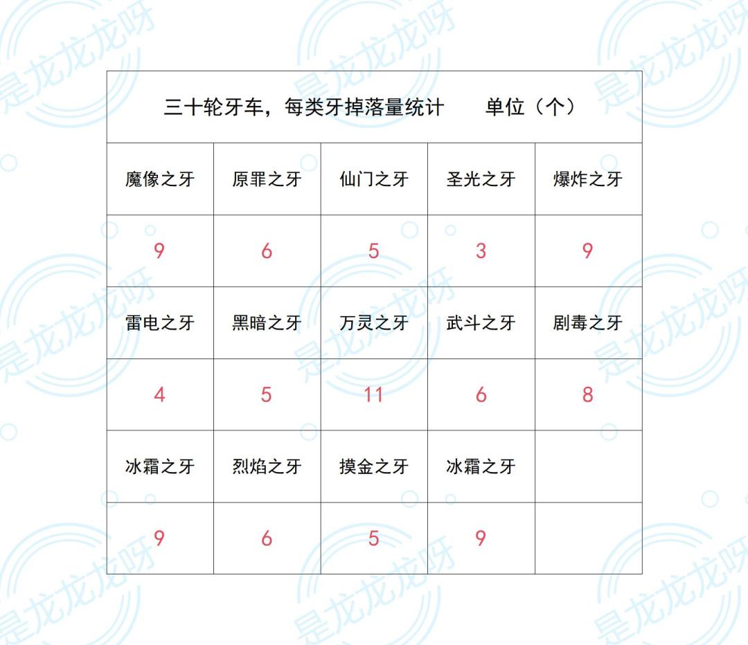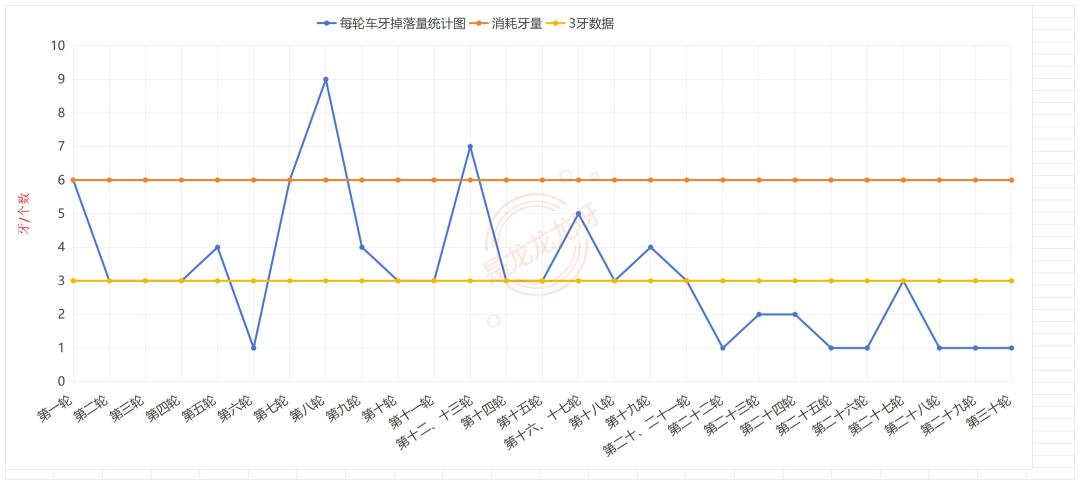 ④根据每轮掉落牙数量,可知三十轮牙车峰值,基本吃低保