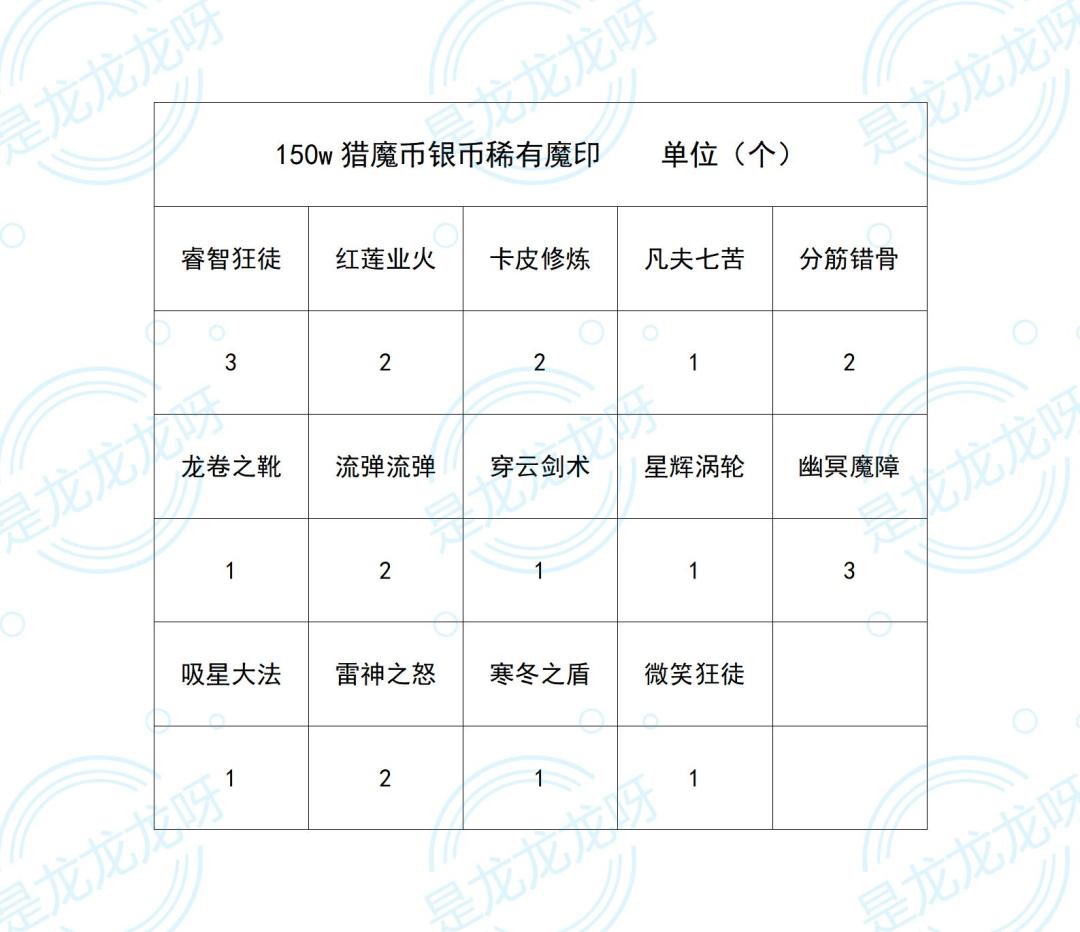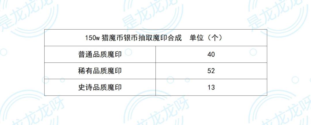 ④150w猎魔币普通、稀有魔印抽取数量