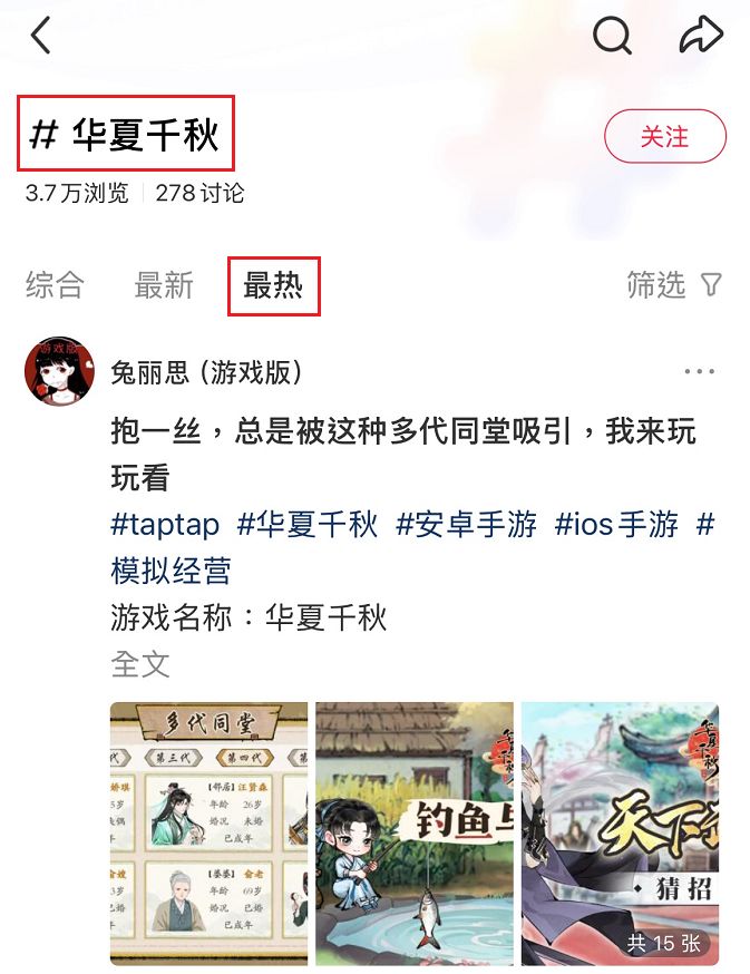 例如:#华夏千秋TAG下-最热,按照该官方平台排列评选Top1-Top3获奖的少侠
