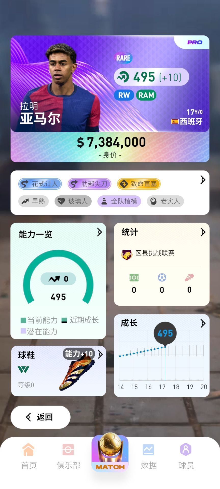 《足球重启》中球员出了除了身体素质、精神属性、速度、技术、射门和防守六维属性以外,各个球员还根据球员特点赋予了不同的天赋技能,天赋类型分别有技术天赋(包含射门、带球、传球、防守、守门)、精神天赋、成长趋势、性格、身体素质和训练态度六种不同的天赋。比如C罗因为得分和头球能力出众,被赋予了终结者和空霸的技术天赋,坚韧的意志被赋予了定海神针的精神天赋,成长天赋是按部就班,因为效力过多家俱乐部性格方面被赋予了志在四方的旅人天赋,身体素质被赋予了玻璃人和病床之友,这个着实没有想到呀,训练态度也只被赋予了打卡上班这样一个普通的天赋,我觉得至少应该是加练狂魔,当然游戏和现实可能有些出入不必过分带入。