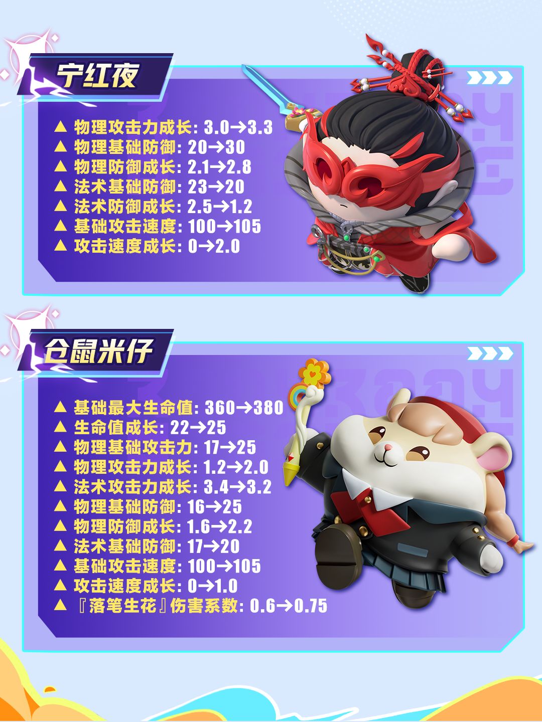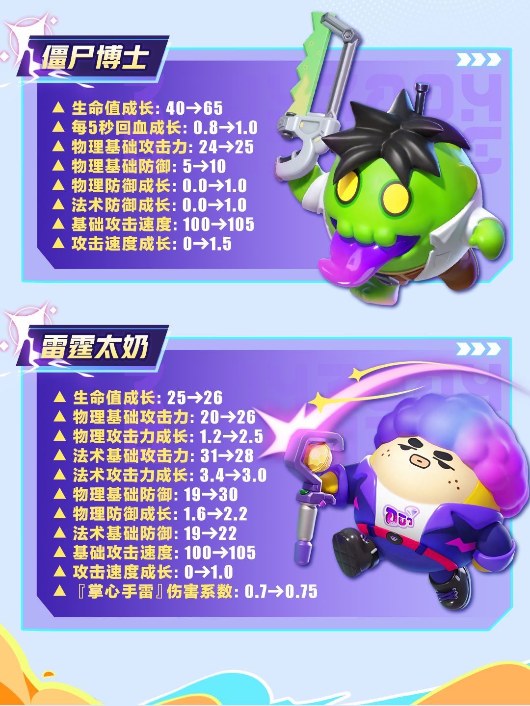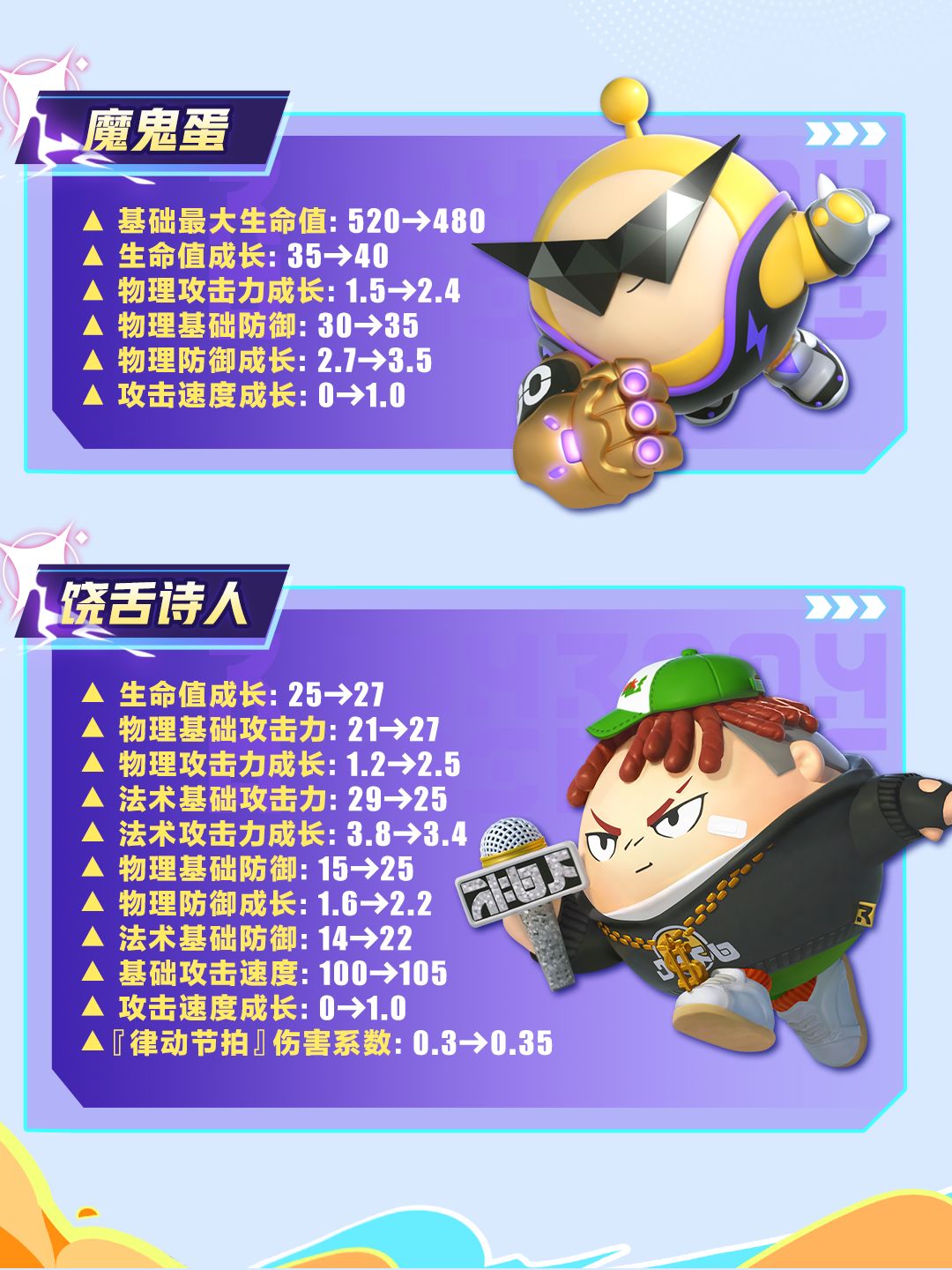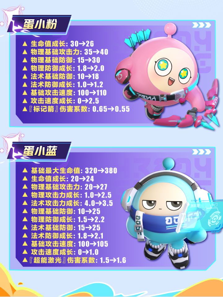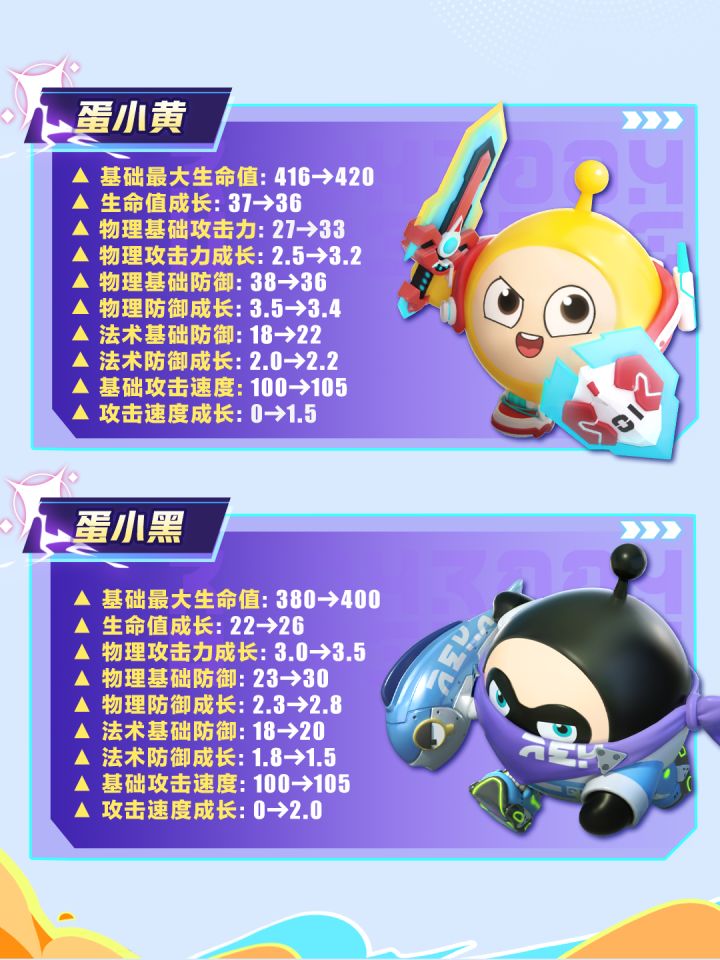 4月17日(本周四)更新后,25名超燃蛋仔将基于角色的职业定位与战斗特色,迎来全面的数值调整。