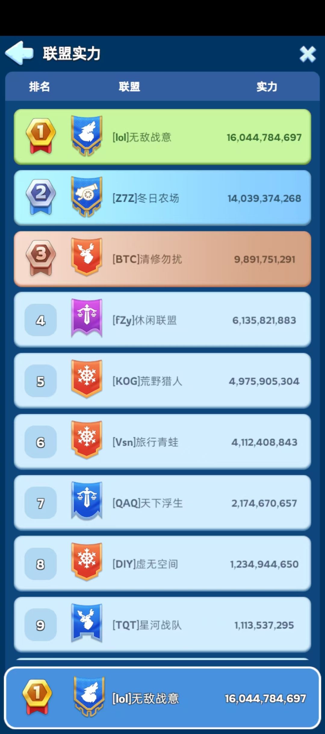 下面贴几张图,分别是724目前联盟战力图,一盟简介图、二盟简介图、三盟简介图