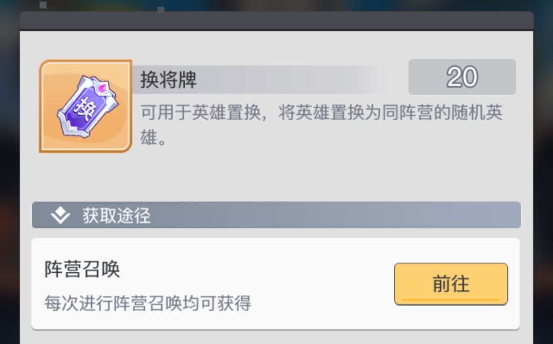 • 随着游戏进程,若获得更好的角色,可使用换将牌将已有英雄置换为同阵营、同星级的其他英雄(天罗阵营角色暂时无法置换)。换将牌可通过阵营召唤、许愿树获得。同时,积极收集角色碎片,提升角色星级和等级,解锁更强技能和属性。