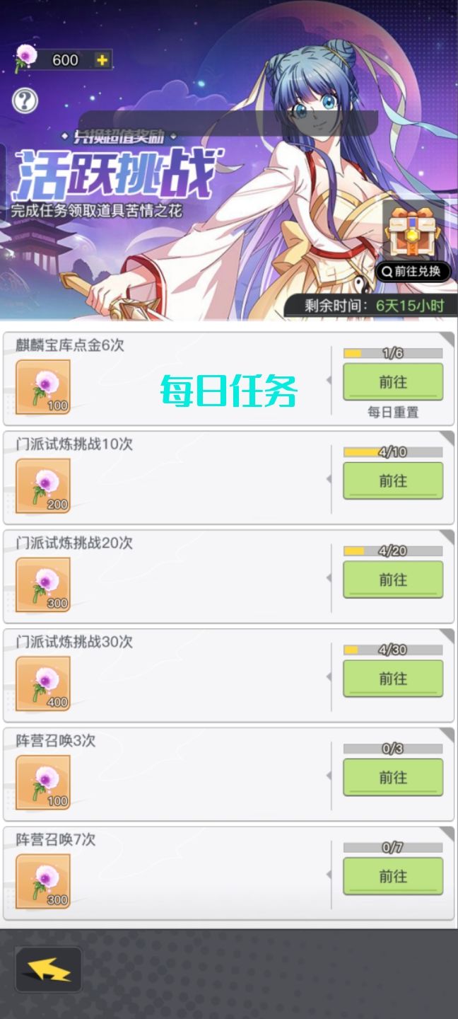 2+5、见图4和图5,要注意活跃任务的第一个是每日任务,过期不候(应该),其他的任务做一做也容易获得,零氪做满有4200,重点!!!来了,图5兑换橙色灵兽50个碎片3000,一个光暗狗粮1200,加起来正好4200这不巧了么。