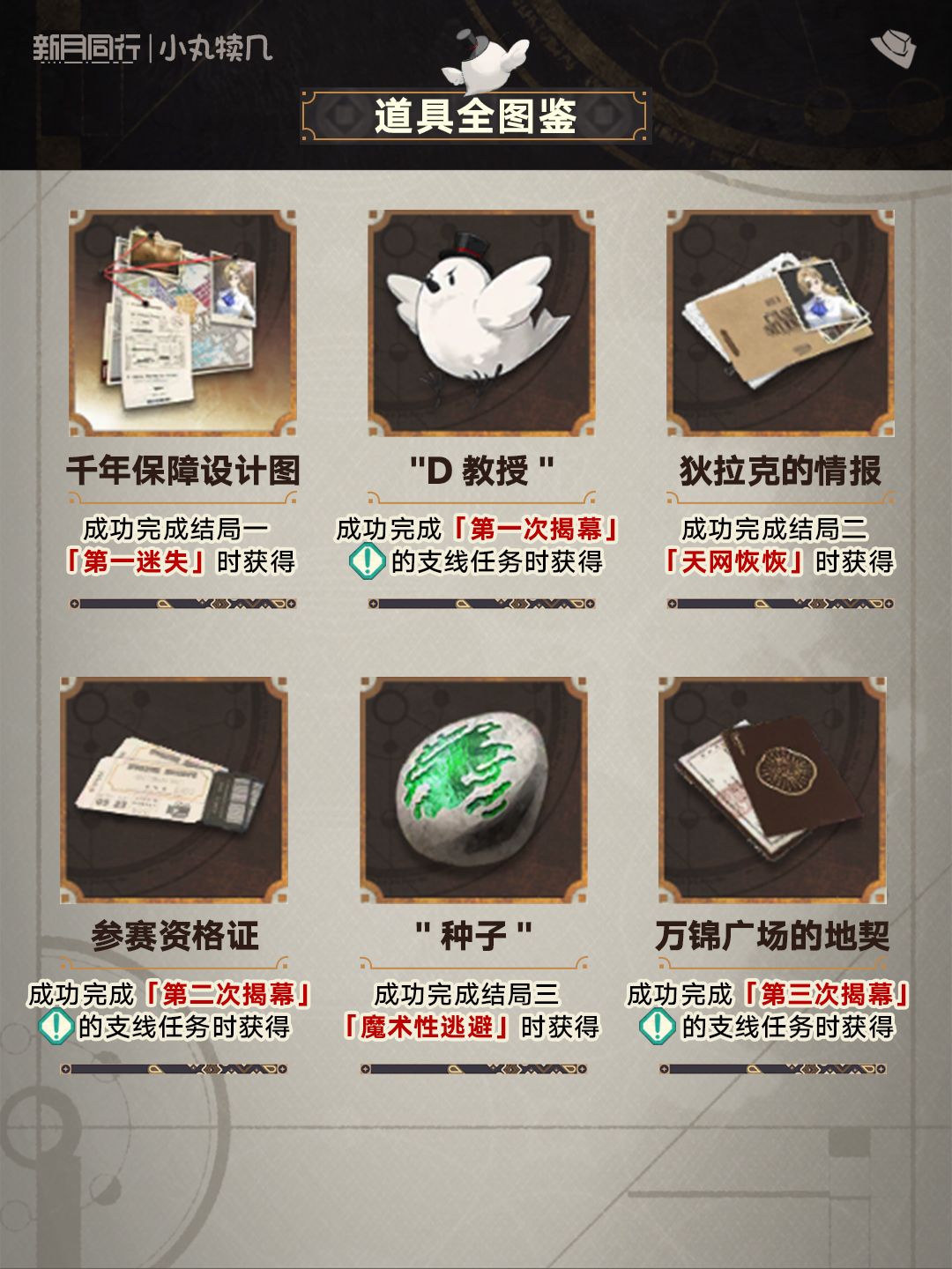 『鸠鸽科狂欢夜』全结局道具收录丨新月同行