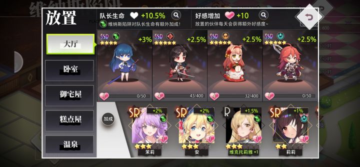 除了正常的角色升级、装备升级,星级提升之外,维纳斯陷阱里面大厅和卧室的角色放置也能加成战力,10%!我今天才发现![[表情_生气]](https://img-tc.tapimg.com/market/images/24f2b24c5043d63f5f2db8bd62b8e3de.png)