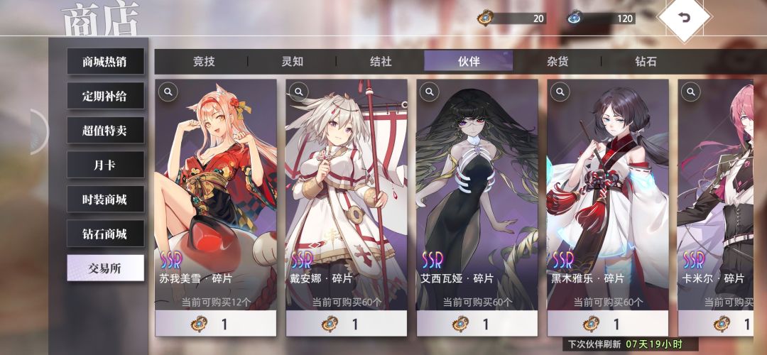 交易所角色碎片换取:不是非得等到60个精金才能换一个角色!!!可以一片一片的换!差7个美雪碎片,20个尼可拉碎片卡了我两天。