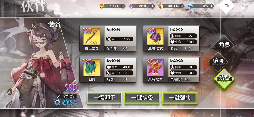 东文真希:推荐能升到5星再花体力去养装备和等级,3星,4星性价比不太高。