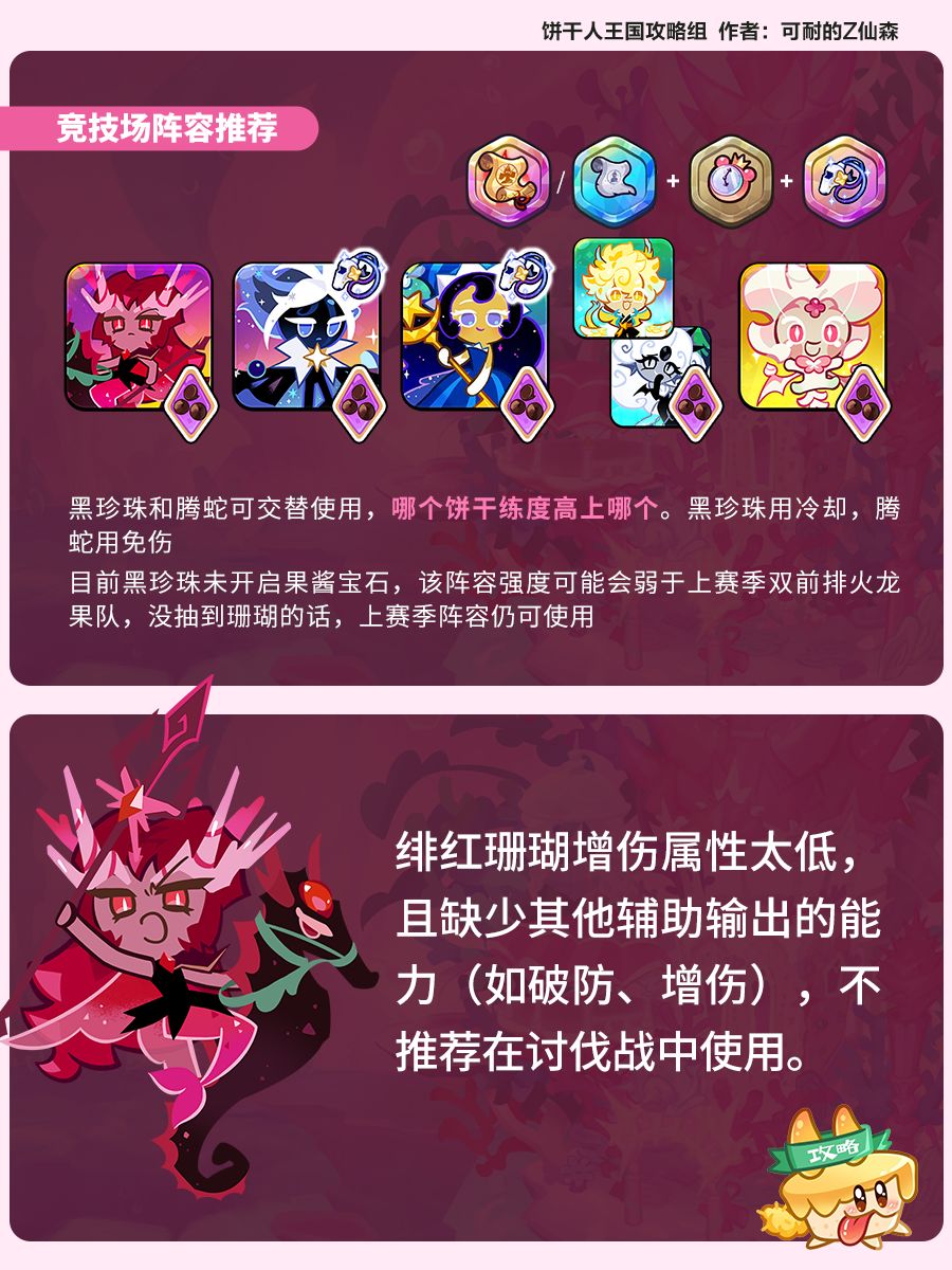 绯红珊瑚测评,首个特殊站场机制饼干,前排仅有珊瑚时会有额外buff,竞技场非常非常强,0星即可上场。