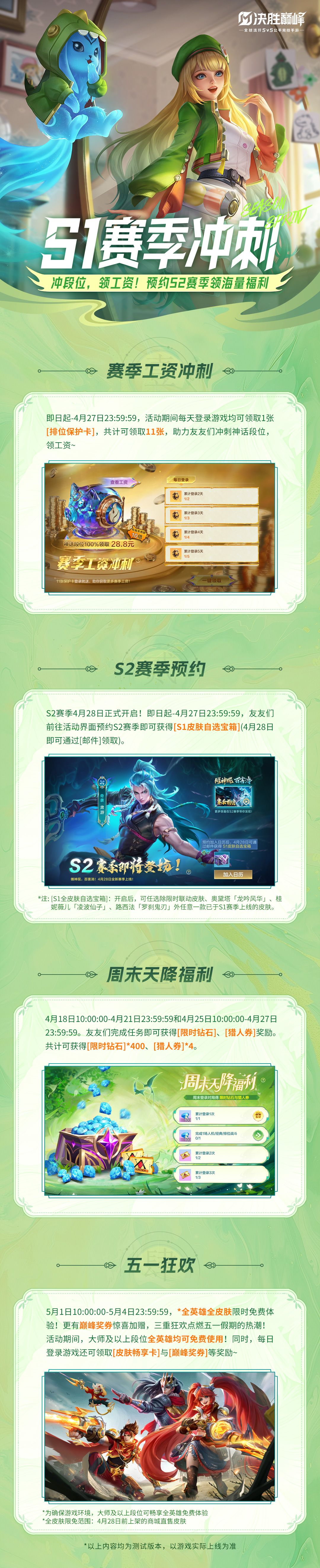 【4.28 S2新赛季来袭】S1赛季冲刺最后10天!