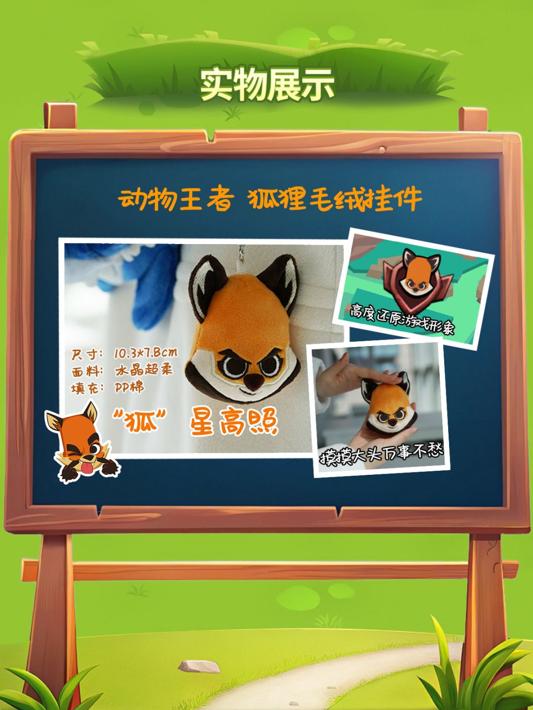除了先前已曝光的徽章系列,你还能拥有以游戏动物形象为原型精心打造的毛绒挂件,小巧可爱的狐狸大头挂件,不管挂在包包还是钥匙扣上,都绝对吸睛,成为人群中的焦点;