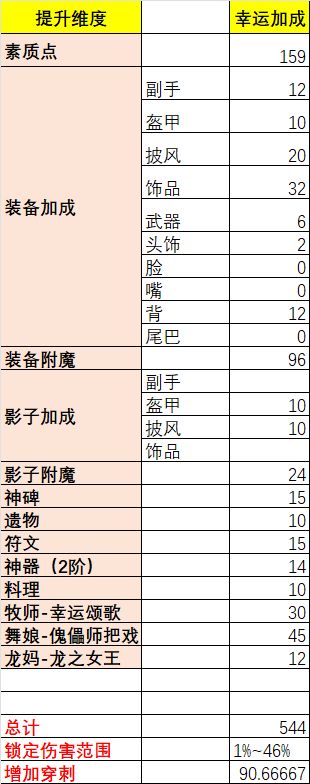 因为幸运不仅可以降低伤害还可以增加穿刺,因此加点Luk优先加满,敏爆将Agi加满(后续测试发现LSA加点伤害更高些),剩余可以加力量Str;