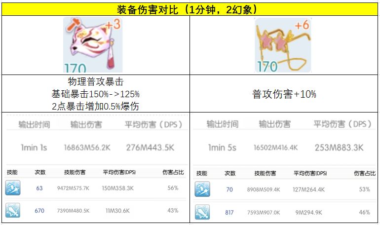 结论:【金箔狐面】dps高于【幻光之镜】,约9.09%