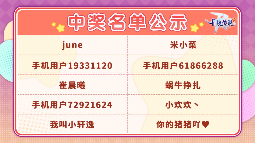 ✦恭喜以下10位冒险者获得【极限节奏系列时装】、【潮流乐手系列头饰】or【青春舞者系列头饰】一套。