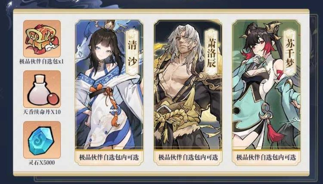 开局极品伙伴自选,推荐选清沙。还有一个角色推荐用星高的过渡,然后攒着抽以后的新卡,毕竟游戏可以每天双修获取碎片。