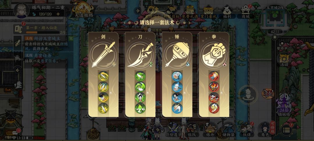 主线会让选一套法术,推荐选第二个木刀,前期刷本快