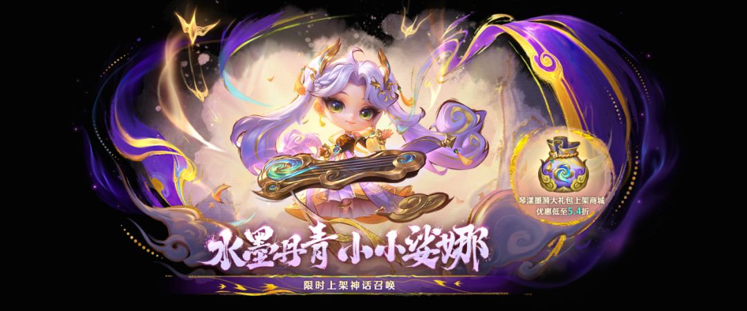水墨丹青主题小小英雄现已上线!全新小小英雄【水墨丹青 小小娑娜】、神话级攻击特效【墨虎腾云击】现已加入神话召唤!