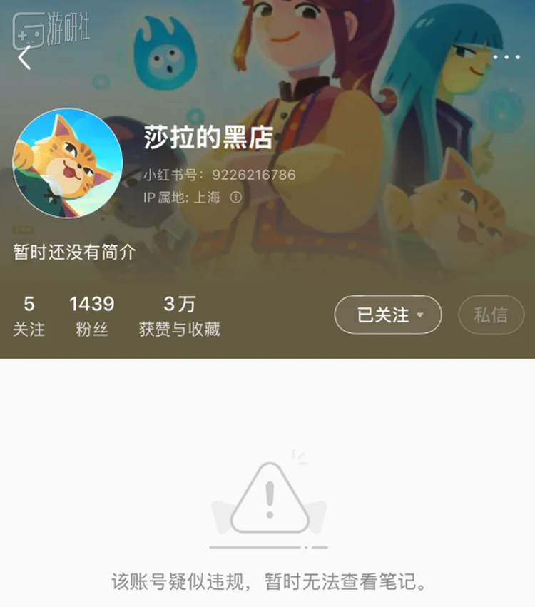 在曝光帖子发出后不久,《莎拉的黑店》制作组的小红书账号被莫名封禁,直到当天傍晚才解封,无疑又给整个事件蒙上了一丝神秘的色彩。