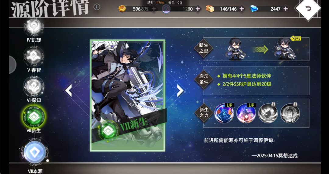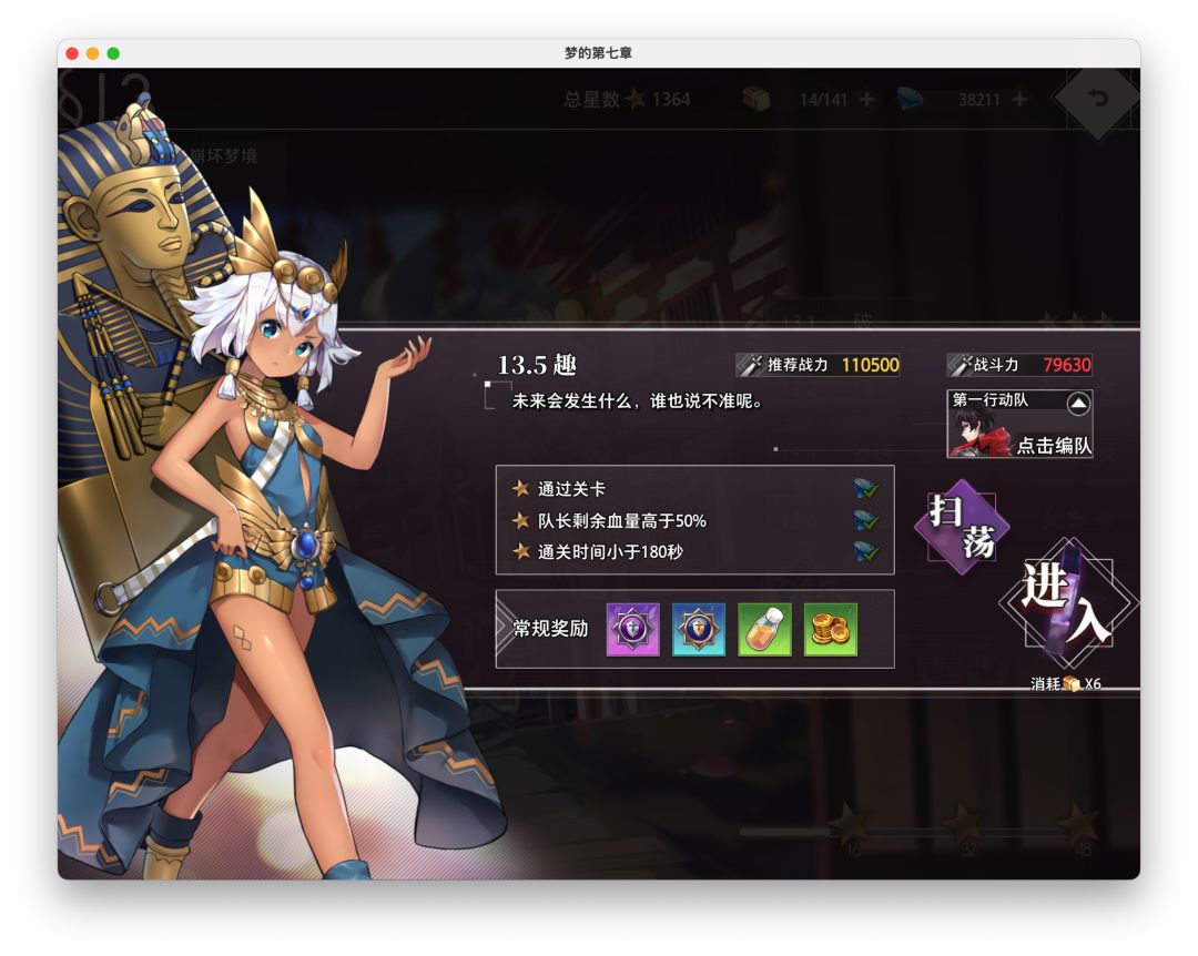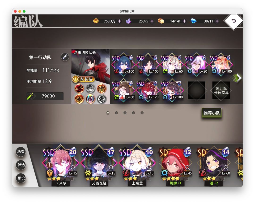 这样的话,探知法要求的4个五星ssr就凑齐了,现在就剩下崩坏14出法主了,关于这个这边给大家一点建议,就是萌新入坑的时候练角色一定提前要问一下群里的老登,我这几天看很多老板的号,很多人都有点练歪了,然后就是推主线的时候一定要同步更新自己的装备等级,不然推图会很费劲。(妮可拉可以优先拉满,本人8万越主线11万就是靠基础拉满)