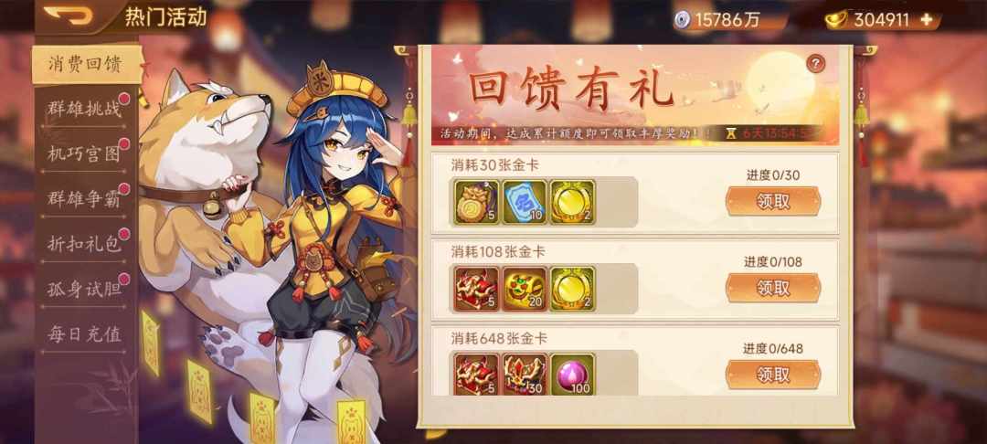 活动内容:活动期间,单日充值达到目标值即可领取奖励!
