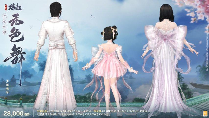 人间四月,江湖新貌,《剑网3缘起》携手《仙剑奇侠传一》联动活动今日开启!联动主题衍生新品与全新天选计划系列外装“天选无色舞”4月18日上架,更多精彩,尽在《剑网3缘起》!