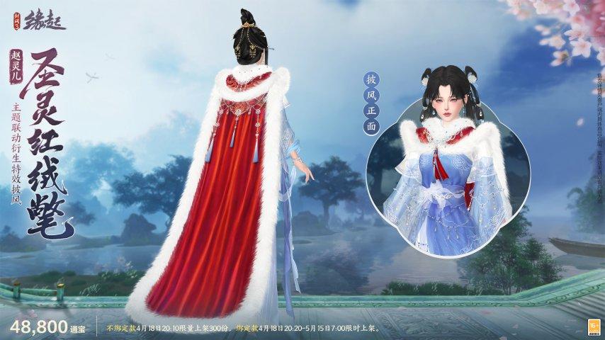 垂云拥深雪,牵星伴月眠,《剑网3缘起》×《仙剑奇侠传一》联动衍生特效披风“圣灵红绒氅”神秘登场!似雪软毛围边,朱红微光长缎,宝珠系缠流苏银饰,点亮如火丝绒,雍容大气!开启特效后,可施展《仙剑奇侠传一》中赵灵儿的终极法术之“雷神”!这是女娲神力觉醒的一声惊雷,唤出雷神跃于空中,以雷霆之势击出,霹雳所过之处邪魔焦土,电光蜿蜒似天罚纹路,撕裂锁妖塔的阴晦,更劈开前路茫茫的命运迷雾!