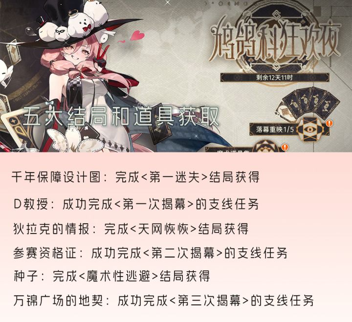 给大家整理了新活动的五大结局以及道具的获取攻略