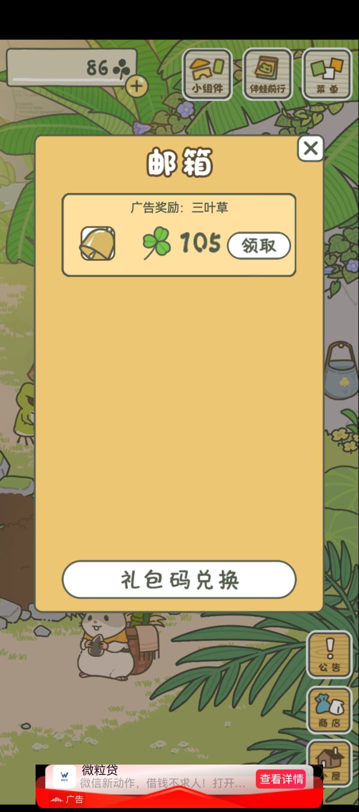 只有我发现了吗,看个15秒的广告就拿到三叶草了。