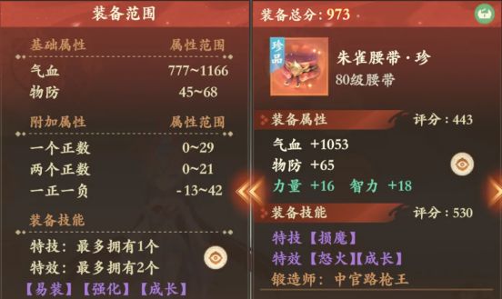 雷震子:80级成长怒火朱雀腰它又来了!基础和双加属于中上水平,不是满属性也无伤大雅,特效怒火和成长+特技,足以弥补前面的小小遗憾,这种腰带无论是输出还是辅助用起来都是非常舒服!