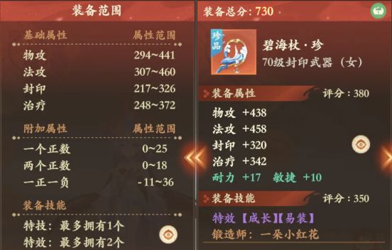 雷震子:70级封印易装武器,封印320和满属性只差了6点,双加27中美中不足,但!最难得的是易装的同时搭配成长特效,能让69的封印大佬打上9段宝石后配上成长的加成,69玩家的实战大利器!